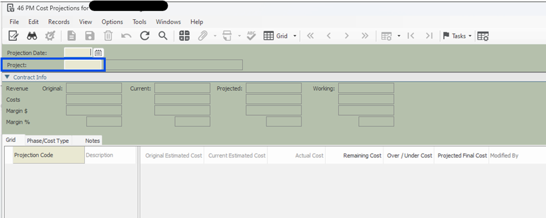 PMCP3. Project: Press f4 and select the project you want to make projections on.