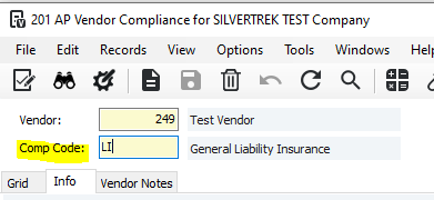 2. Enter the Vendor that you would like to set up the compliance for (you can F4 to see vendor options).