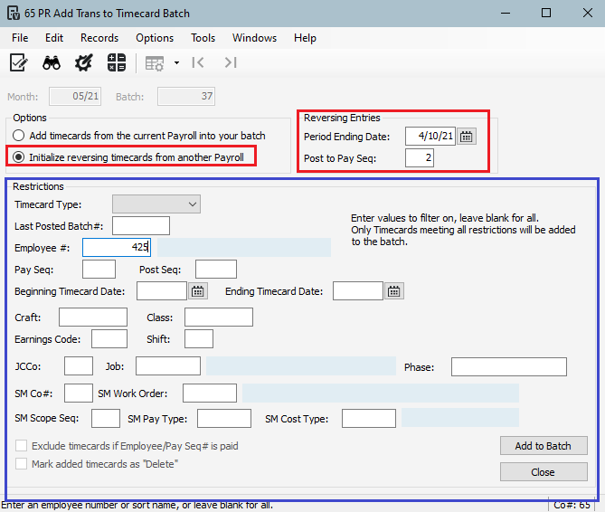 You can use reversing timecards to correct, state, job or insurance on timecards that have been processed.