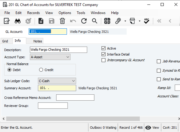 7. Indicate the Normal Balance Type as either Debit or Credit. This field is not available for GL accounts with an Account Type of H (Header).