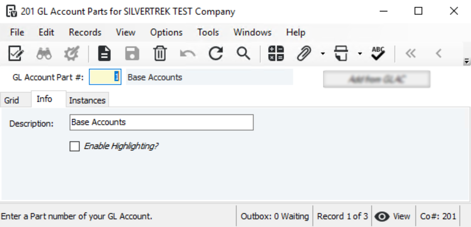 1. Go to GL Account parts, make sure the new GL account is copied over into an instance with the right GL # and GL Name