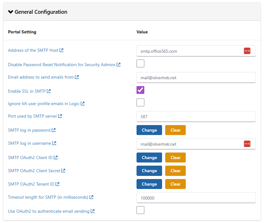 - Log into Vista Web and go to the Portal Settings > Email Configuration section.