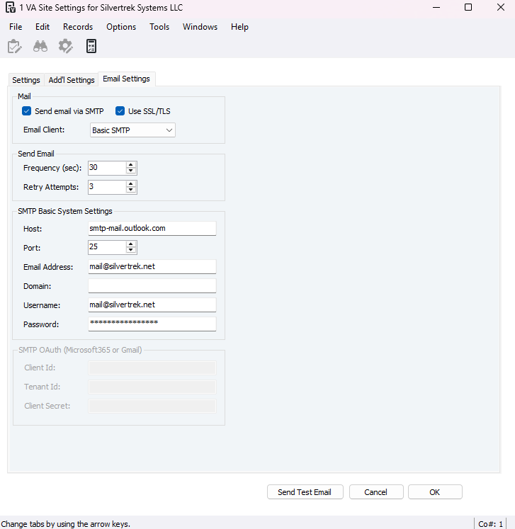 - Log into Vista and go to VA Site Settings > Email Settings tab.